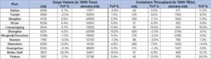 Σύμφωνα με πρόσφατα δημοσιευμένα στοιχεία, ο όγκος εμπορευματοκιβωτίων των λιμένων της Κίνας αυξήθηκε κατά 4,5% από τον Ιανουάριο έως τον Ιούλιο του 2023, φτάνοντας συνολικά τα 176,2 εκατομμύρια TEU σε ετήσια βάση (YoY). Ο όγκος φορτίου των κινεζικών λιμένων ήταν 9617,1 εκατομμύρια τόνοι, αύξηση 8% σε ετήσια βάση. Από τον Ιανουάριο έως τον Ιούλιο του τρέχοντος έτους, οι όγκοι εμπορευματοκιβωτίων στο λιμάνι της Σαγκάης αυξήθηκαν κατά 4,1%, παρά τη μικρή πτώση 2,3% σε ετήσια βάση σε σύγκριση με τον Ιούλιο του 2022. Το λιμάνι του Ningbo-Zhoushan, το οποίο κατέλαβε την τρίτη θέση στον όγκο εμπορευματοκιβωτίων τον Ιανουάριο, παρουσίασε πτώση στην απόδοση τον Ιούλιο σε σύγκριση με την ίδια περίοδο πέρυσι. Ωστόσο, κατάφερε να επιτύχει μια μέτρια βελτίωση 0,5% στην απόδοση από τον Ιανουάριο έως τον Ιούλιο του τρέχοντος έτους.
