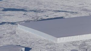 Ένα ασυνήθιστο μεγάλο παγόβουνο με σχήμα τέλειου ορθογώνιου – που θυμίζει τον εξωγήινο μονόλιθο στην ταινία «2001: Οδύσσεια του Διαστήματος» αλλά σε παγωμένη έκδοση – φωτογράφισε η Αμερικανική Διαστημική Υπηρεσία (NASA). Στη φωτογραφία που έδωσε στη δημοσιότητα, δεν μπορεί παρά να θαυμάσει κανείς τη φύση, η οποία, μέσα σε όλη τη χαοτική τυχαιότητα που τη διέπει, μπορεί να παράγει σχεδόν τέλεια γεωμετρικά σχήματα σε τόσο μεγάλη κλίμακα. Σε γενικές γραμμές υπάρχουν δύο ειδών παγόβουνα: αυτά που μοιάζουν με τρίγωνο ή πρίσμα πάνω από την επιφάνεια του νερού (όπως αυτό που βύθισε τον «Τιτανικό») και εκείνα που είναι μακριά, πλατιά και επίπεδα σαν φέτα κέικ. Το συγκεκριμένο γεωμετρικό παγόβουνο, που έχει μήκος σχεδόν δύο χιλιομέτρων, έχει αποκολληθεί από την σταδιακά καταρρέουσα παγοκρηπίδα Λάρσεν C στην Ανταρκτική Χερσόνησο. Ορατό είναι μόνο το ένα δέκατο του παγόβουνου, καθώς το υπόλοιπο βρίσκεται μέσα στο νερό. Οι επιστήμονες το θεωρούν ασταθές και επιρρεπές σε περαιτέρω διάσπαση.