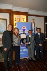 Παραλαμβάνοντας το βραβείο ο Δήμαρχος Πειραιά κ. Γιάννης Μώραλης από τον Πρόεδρο της Ένωσης κ. Χαράλαμπο Σημαντώνη, ευχήθηκε να συνεχίσει η Ένωση Εφοπλιστών Ναυτιλίας Μικρών Αποστάσεων το παραγωγικό της έργο.