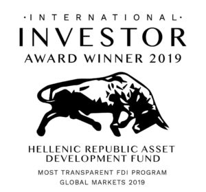 Με το βραβείο «Most Transparent FDI Program / Global Markets 2019» ως το πιο διαφανές πρόγραμμα προσέλκυσης διεθνών άμεσων ξένων επενδύσεων τιμήθηκε το ΤΑΙΠΕΔ από το διεθνές περιοδικό International Investor.