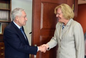 Ο Υπουργός Ναυτιλίας και Νησιωτικής Πολιτικής κ. Φ. Κουβέλης συναντήθηκε την σήμερα στο Υπουργείο Ναυτιλίας και Νησιωτικής Πολιτικής με την Πρέσβη της Αυστρίας στην Ελλάδα, κα Andrea Ikic-Böhm, κατόπιν πρωτοβουλίας της αυστριακής πλευράς. Η Πρέσβης της Αυστρίας απέδωσε έμφαση στις προτεραιότητες της χώρας ως προεδρεύουσας στο Συμβούλιο της ΕΕ (Β΄ εξάμηνο 2018), οι οποίες αφορούν μεταξύ άλλων στην ασφάλεια των θαλασσίων συνόρων και τη διαχείριση των αυξημένων μεταναστευτικών ροών στα σύνορα της Ε.Ε. Υπογράμμισε, παράλληλα, το σημαντικό ρόλο του FRONTEX στη διαχείριση του προσφυγικού ζητήματος στην Ευρώπη, επισημαίνοντας την ανάγκη συνολικής αξιολόγησης του ζητήματος σε επίπεδο Ε.Ε. Επιπρόσθετα, η κ. Πρέσβης υποστήριξε την περαιτέρω ανάπτυξη των σχέσεων συνεργασίας της ελληνικής ακτοφυλακής με τις όμορες ευρωπαϊκές ακτοφυλακές, τόσο στον τομέα της δια θαλάσσης μετανάστευσης όσο και επί θεμάτων ασφάλειας ναυσιπλοΐας και προστασίας θαλασσίου περιβάλλοντος, τόσο σε διμερές όσο και ευρωπαϊκό επίπεδο. Ιδιαίτερη έμφαση αποδόθηκε από Αυστριακής πλευράς σε θέματα ασφάλειας ναυσιπλοΐας, κυρίως επί Ε/Γ-Ο/Γ σκαφών καθώς και προστασίας θαλασσίου περιβάλλοντος, λαμβάνοντας υπόψη ότι ετησίως επισκέπτονται την Ελλάδα πλέον των 400 χιλιάδων Αυστριακών υπηκόων. Ο κ. Υπουργός από την πλευρά του επέδωσε έμφαση στις υφιστάμενες προτεραιότητες του Αρχηγείου Λιμενικού Σώματος – Ελληνικής Ακτοφυλακής αναφορικά με την επιτήρηση των θαλασσίων συνόρων και την διαχείριση των μεταναστευτικών ροών στην ελληνική επικράτεια, σημειώνοντας τις απορρέουσες σημαντικές οικονομικές επιπτώσεις και σε δημοσιονομικό επίπεδο. Συναφώς επιβεβαιώθηκε η έμπρακτη στήριξη των δράσεων και η στενή συνεργασία με τον FRONTEX από πλευράς ΑΛΣ-ΕΛΑΚΤ και την ενίσχυση της υφιστάμενης διμερούς συνεργασίας Ελλάδας και Αυστρίας, ως προεδρεύουσας στο συμβούλιο της Ε.Ε., προς το σκοπό αυτό. Έμφαση αποδόθηκε στην υιοθέτηση ενιαίων πολιτικών σε επίπεδο Ε.Ε. προκειμένου να καταστεί εφικτή η λειτουργική διαχείριση των μεταναστευτικών ροών. Ο κ. ΥΝΑΝΠ επιβεβαίωσε την σταθερή προσήλωση της χώρας μας στην εφαρμογή του Ενωσιακού κεκτημένου αλλά και των συναφών συμβάσεων του ΙΜΟ μεταξύ άλλων και για θέματα ασφάλειας ναυσιπλοΐας και προστασίας θαλασσίου περιβάλλοντος. Ολοκληρώνοντας, ο κ. ΥΝΑΝΠ αναφέρθηκε με τη σειρά του στη προώθηση της συνεργασίας των δύο χωρών στον ναυτιλιακό τομέα στο πλαίσιο της ΕΕ, με έμφαση στις προτεραιότητες που θα τεθούν στο επικείμενο Συμβούλιο Υπουργών της ΕΕ επί θεμάτων ναυτιλιακών μεταφορών (03.12.2018). Η συνάντηση ολοκληρώθηκε σε θετικό κλίμα με τις δύο πλευρές να προσβλέπουν στην ενίσχυση της συνεργασίας τους, με στόχο την επιτυχή περάτωση της αυστριακής Προεδρίας στο Συμβούλιο της Ε.Ε.