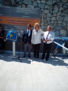 Ο Δήμαρχος –κατά τον χαιρετισμό του– ευχαρίστησε την Περιφερειάρχη, τον Αντιπεριφερειάρχη και τις υπηρεσίες της Περιφέρειας Αττικής που είναι δίπλα τους σε κάθε περίπτωση και έχουν βοηθήσει έτσι ώστε το νησί να αναβαθμιστεί και να γίνει πρότυπο. Απένειμε δε τιμητική πλακέτα στην κα Δούρου και τον κο Χατζηπέρο.