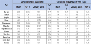 Ένα καλό πρώτο τρίμηνο είδαν τα Κινεζικά λιμάνια. Από τον Ιανουάριο έως τον Μάρτιο του 2023, σύμφωνα με στοιχεία του Ministry of Transport of the People’s Republic of China, η διακίνηση εμπορευματοκιβωτίων των κινεζικών λιμένων αυξήθηκε στα 69,7 εκατομμύρια TEU, αντιπροσωπεύοντας ετήσια αύξηση 3,5%. Εν τω μεταξύ, ο όγκος φορτίου των κινεζικών λιμένων έφτασε τους 3854,2 εκατομμύρια τόνους, σημειώνοντας αύξηση 6,2% από το προηγούμενο έτος.