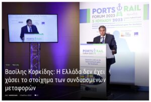 O Βασίλης Κορκίδης, Πρόεδρος του Εμπορικού και Βιομηχανικού Επιμελητήριου Πειραιώς, παρέθεσε ενδιαφέροντα στοιχεία για τον Πειραιά και τη Ναυτιλία γενικότερα στο πλαίσιο των εργασιών του Ports & Rail Forum 2023. Ο Πειραιάς τόνισε είναι ένα κομβικό λιμάνι. Εξασφαλίζει ότι τα εμπορεύματα μπορούν να φτάσουν γρηγορότερα στην υπόλοιπη Ευρώπη από 7 έως 14 ημέρες. Αυτός είναι ο χρόνος που κερδίζουν οι μεταφορές. Το ερώτημα είναι ένα: Η Ελλάδα έχει χάσει το στοίχημα των συνδυασμένων μεταφορών; Η απάντηση είναι όχι δεν έχει χάσει το τρένο, έχει αργήσει; Ναι” τόνισε. Επίσης ανέφερε ότι είναι αναγκαίο να εκσυγχρονιστεί το μόνο σιδηροδρομικό δίκτυο της χώρας που να συνδέει τον Πειραιά, το 2ο μεγαλύτερο λιμάνι της Μεσογείου και 5ο στην Ευρώπη. Για την Πράσινη μετάβαση υπάρχουν χρήματα. Διαθέσιμα κεφαλαία. Δεν είναι για να τα λιβανίζουμε αλλά για να τα αξιοποιούμε και να υλοποιούμε τα έργα. Προτεραιότητα είναι να μην χαθεί ούτε ένα ευρώ, αλλά να πιάσουν τόπο τα κονδύλια. Στην ελληνική επικράτεια δεν αξιοποιούμε τα μέγιστα, έτσι οδηγούμαστε σε μία αδρανοποίηση των logistics. Ο OΣΕ διακινεί 30 containers από Αθήνα-Θεσσαλονίκη και αλλά τόσα κατά την επιστροφή, που αναλογεί στις μετακινήσει 30 φορτηγών ημερησίως στο δρομολόγιο Αθήνας-Θεσσαλονίκης. Να δούμε τι θα γίνει με το Θριάσιο Εμπορευματικό Κέντρο αλλά και τα άλλα λιμάνια, όπως του Βόλου. Με το προεδρικό διάταγμα στις 27 Ιουνίου 2023 και το ΦΕΚ 130, άρθρο 10, προβλέπεται η μεταφορά των αρμοδιοτήτων λιμενικών και κτηριακών μεταφορών από το Υπουργείο Μεταφορών και Υποδομών στο Υπουργείο Ναυτιλίας. Η απανθρακοποίηση των μεταφορών βρίσκεται στο επίκεντρο του ευρύτερου στόχου της Ε.Ε. για μείωση των εκπομπών αερίων του θερμοκηπίου, όπως ορίζεται στην Ευρωπαϊκή Πράσινη Συμφωνία. Ωστόσο, όλοι οι τομείς που συνθέτουν τις συνδυασμένες μεταφορές εμφανίζουν σημαντική χρονική υστέρηση στην υιοθέτηση συστημάτων κίνησης που θα χρησιμοποιούν φιλικότερα προς το περιβάλλον καύσιμα. Οι εκπομπές CO2 της ναυτιλιακής βιομηχανίας υπολογίζεται πως μειώθηκαν κατά περίπου 14% κατά την περίοδο 2009-2019. Αντίθετα, τα στοιχεία του Διεθνούς Οργανισμού Ενέργειας (ΙΕΑ) δείχνουν ότι, τόσο οι εκπομπές CO2 από τα επιβατικά οχήματα, όσο και οι εκπομπές CO2 από τις οδικές εμπορευματικές μεταφορές αυξήθηκαν κατά 20%, με την αύξηση του όγκου των οχημάτων παγκοσμίως κατά 1 δισ. έως 1,6 δισ. να αντισταθμίζει τα όποια κέρδη στην αποδοτικότητα των καυσίμων και τα πρώτα στάδια υιοθέτησης των ηλεκτρικών οχημάτων (EV). Ομοίως, τα δεδομένα για τις εκπομπές των αεροπορικών μεταφορών δείχνουν ακόμη μεγαλύτερη αύξηση, καθώς ο ετήσιος αριθμός των επιβατών αυξήθηκε από 2,5 δισ. σε 4,6 δισ. και ο όγκος των αεροπορικών εμπορευμάτων αυξήθηκε κατά 25%. Ο οίκος Clarksons απέδωσε τη μείωση των εκπομπών CO2 στην αργή πλοήγηση, μια απάντηση στη διαρθρωτική πλεονάζουσα παραγωγική ικανότητα στη δεκαετία του 2010, με τα ποντοπόρα πλοία να επιβραδύνουν την ταχύτητά τους 15% κατά μέσο όρο μεταξύ 2009 και 2019. Υπήρξαν επίσης μικρότερες συνεισφορές από τα πιο αποδοτικά πλοία, με τον «οικολογικό» στόλο να αυξάνεται στο 18% της χωρητικότητας έως το 2019, ενώ προβλέπεται να φτάσει το 32% έως το 2024. Αξίζει να σημειωθεί η τάση μείωσης της ναυτιλίας από 8 δισ. σε 12 δισ. τόνους των εκπομπών CO2. Συνολικά οι μεταφορές συμβάλλουν περίπου στο 21% του παγκόσμιου CO2 και, εντός του τομέα αυτού, η επιβατική κίνηση αντιπροσωπεύει το 46% του 