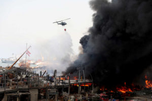 Σε αποθήκη ελαστικών και μηχανέλαιων στο λιμάνι της Βηρυτού ξέσπασε νωρίτερα σήμερα φωτιά. Πυκνοί μαύροι καπνοί καλύπτουν τη Βηρυτό και ήδη ελικόπτερα επιχειρούν για να σβήσουν τη φωτιά. Εικόνες που μεταδίδονται από τηλεοπτικά δίκτυα δείχνουν ένα ελικόπτερο με δεξαμενή με νερό να πετάει ήδη στην περιοχή. Η νέα φωτιά στη Βηρυτό ξέσπασε στην ζώνη αφορολόγητων προϊόντων του λιμανιού, ενώ μια τεράστια στήλη καπνού είναι ορατή από πολλές συνοικίες της πρωτεύουσας. Στρατιωτική πηγή σημείωσε ότι προς το παρόν δεν έχουν γίνει γνωστά τα αίτια της