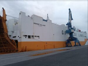 Μετά από τις δύο επιτυχημένες εκφορτώσεις 1.600 και πλέον αυτοκινήτων στο λιμάνι του Βόλου, στις 7 και 19 Ιουλίου 2023, νέο πλοίο, το Ro-Ro Cargo Ship GRANDE ELLADE, κατέπλευσε χθες Πέμπτη 10 Αυγούστου 2023 στον λιμένα προερχόμενο από την Αμβέρσα, με 1.533 καινούργια αυτοκίνητα(τύπου mercedes, volvo, citroen, peugeot κ.α.) και 85 ro – ro μηχανήματα έργου(caterpillar, john deere κ.α.).