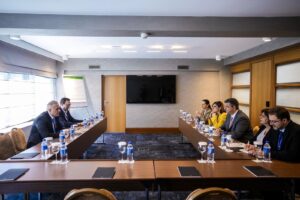 Στο πλαίσιο του ετήσιου συνεδρίου της ESPO (EUROPEAN SEA PORTS ORGANIZATION), το οποίο διεξήχθη στη Θεσσαλονίκη μετά τη Γενική Συνέλευση της 7ης, 8ης και 9ης Μαΐου 2025, ο Αναπληρωτής Διευθύνων Σύμβουλος της ΟΛΠ Α.Ε., κ. Παναγιώτης Τσώνης, συναντήθηκε με τον Επίτροπο Βιώσιμων Μεταφορών και Τουρισμού της Ευρωπαϊκής Ένωσης, κ. Απόστολο Τζιτζικώστα. Κατά τη διάρκεια της συνάντησης συζητήθηκαν τα κοινά ζητήματα και οι προκλήσεις που καλούνται να αντιμετωπίσουν οι λιμένες σε ευρωπαϊκή εμβέλεια. Στο επίκεντρο της συζήτησης τέθηκαν οι σύγχρονες ενεργειακές και γεωπολιτικές προκλήσεις, η ανάγκη αντιμετώπισης της κλιματικής αλλαγής, καθώς και ο ρόλος του λιμένα Πειραιά, ως του μεγαλύτερου λιμένα της χώρας, στην προαγωγή του διεθνούς εμπορίου και στην ανάπτυξη του τουρισμού και της κρουαζιέρας στην Ευρώπη.