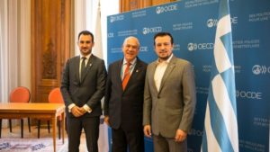Την έκθεση και τα θετικά της μηνύματα για την ελληνική οικονομία συζήτησαν ο Αναπληρωτής Υπουργός Οικονομίας, Αλέξης Χαρίτσης και ο Υπουργός Ψηφιακής Πολιτικής, Νίκος Παππάς, με τον Γενικό Γραμματέα του ΟΟΣΑ, ‘Ανχελ Γκουρία, σε συνάντησή τους στο πλαίσιο της ετήσιας υπουργικής συνόδου του Οργανισμού στο Παρίσι. Στην ίδια συνάντηση, ο κ. Γκουρία δήλωσε τη συμφωνία του με το περιεχόμενο και τις κατευθύνσεις της Αναπτυξιακής Στρατηγικής και συζήτησε με τους κκ. Χαρίτση και Παππά την προοπτική ενός νέου συμφώνου συνεργασίας του ΟΟΣΑ με την ελληνική κυβέρνηση, για την εμβάθυνση και την περαιτέρω συγκεκριμενοποίησή της.