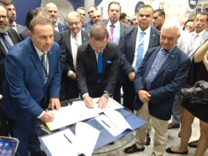 Στην υπογραφή δύο συμφωνιών που αφορούν την ασφάλεια στα λιμάνια, αλλά και την έναρξη γραμμής παραγωγής για ρυμουλκά στα δύο ναυπηγεία του Ομίλου της ONEX, υπεγράφησαν χθες στο περιθώριο της ναυτιλιακής έκθεση των Ποσειδωνίων.