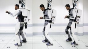 Ένας 28χρονος άνδρας, τελείως παράλυτος από τους ώμους και κάτω, ο οποίος είχε σπάσει το λαιμό του μετά την πτώση του από ύψος 14 μέτρων σε ένα νυχτερινό κλαμπ πριν τέσσερα χρόνια, μπόρεσε να περπατήσει ξανά φορώντας έναν ολόσωμο ρομποτικό εξωσκελετό, τον οποίο ελέγχει με τον νου του. Προς το παρόν, ο ασθενής δεν κινείται τελείως ανεξάρτητα, καθώς ο εξωσκελετός με την ονομασία “Ours” είναι συνδεμένος από ψηλά με έναν ιμάντα προσαρτημένο στο ταβάνι. Πάντως το επίτευγμα αποτελεί σημαντικό βήμα προόδου, καθώς στον εγκέφαλο του τετραπληγικού ασθενούς είναι εμφυτευμένοι αισθητήρες και όχι ηλεκτρόδια, όπως σε άλλες περιπτώσεις, οι οποίοι του επιτρέπουν να κινεί με τη σκέψη του και τα τέσσερα άκρα του και όχι μόνο ένα όπως στο παρελθόν.