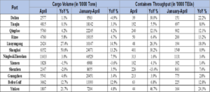 Σύμφωνα με πρόσφατα δημοσιευμένα στοιχεία, τα λιμάνια της Κίνας σημείωσαν αύξηση του όγκου εμπορευματοκιβωτίων από τον Ιανουάριο έως τον Απρίλιο του 2023 φθάνοντας τα 95,4 εκατομμύρια TEU αντιπροσωπεύοντας ετήσια αύξηση 4,8%. Από τον Ιανουάριο έως τον Απρίλιο του 2023, ο όγκος φορτίου των κινεζικών λιμένων ήταν 5,2 δισεκατομμύρια τόνοι, σημειώνοντας ετήσια αύξηση 7,6%.