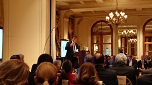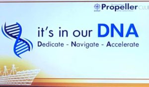 Ο Πρόεδρος του Propeller Club, Γιώργος Ξηραδάκης με επίκεντρο το D.N.A. στο χαιρετισμό του, μετά από την προβολή μικρού μήκους ταινιών αφιερωμένων στο Propeller Club υπενθύμισε την συνεισφορά του αρχαιότερου κοινωνικού σωματείου της Ναυτιλίας στην Ελλάδα εστιάζοντας στην κοινωνική του προσφορά αλλά και στην προώθηση σε παγκόσμιο επίπεδο της ναυτιλίας της χώρας.