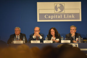 Ειδικότερα κ. Nicolas Bornozis, President of Capital Link Inc., τόνισε ότι: «Το φετινό Συνέδριο επικεντρώθηκε στο «σταυροδρόμι» στο οποίο βρίσκεται η Nαυτιλία καθώς θα πρέπει να επιλέξει και εφαρμόσει στρατηγικές για να αντιμετωπίσει τις προκλήσεις του άμεσου μέλλοντος. Γι’ αυτό το λόγο το Συνέδριο επικεντρώθηκε σε τρία σημαντικά θέματα, τα οποία θέτουν νέους κανόνες: Το πρώτο είναι ο μετασχηματιστικός αντίκτυπος της Τεχνολογίας και της Ψηφιοποίησης. Το δεύτερο αφορά τη σπουδαιότητα και την αναγκαιότητα της Ναυτικής Εκπαίδευσης. Και το τρίτο, στο οποίο αφιερώθηκε και το μεγαλύτερο μέρος του Συνεδρίου, αφορά τη συμμόρφωση με τους νέους Περιβαλλοντικούς Κανονισμούς και πώς αυτοί θα επηρεάσουν τη Nαυτιλία από την επιχειρησιακή, επενδυτική και χρηματοοικονομική άποψη. Ειδική βαρύτητα δόθηκε στο θέμα των Περιβαλλοντικών Κανονισμών, με ειδικά πάνελ συζητήσεων σε θέματα όπως Ballast Water Treatment, Sulfur Cap and Decarbonization, καθώς επίσης και τις προοπτικές όσον αφορά τα Marine Fuels.»