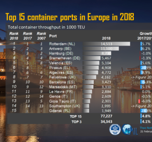 Σε σταθερά ανοδική τροχιά κινείται ο Οργανισμός Λιμένος Πειραιώς σύμφωνα με νεότερα στοιχεία που τον εμφανίζουν το προηγούμενο έτος να φιγουράρει στην έκτη θέση της κατάταξης μεταξύ των δεκαπέντε πρώτων λιμένων της Ευρώπης από την όγδοη που ήταν το 2017. Ως γνωστόν στην 32η από την 38η θέση της παγκόσμιας κατάταξης των 100 πρώτων λιμένων αναρριχήθηκε το λιμάνι του Πειραιά σύμφωνα με τα νεότερα στοιχεία του Alphaliner το οποίο και «καλπάζει” για την πρώτη τριαντάδα. Στο μεταξύ αύξηση της τάξης του 24,4% ( 1,246,007 TEU)εμφανίζει ο Πειραιάς το πρώτο τρίμηνο του έτους στα οικονομικά αποτελέσματα που δημοσιοποίησε η COSCO SHIPPING Ports. Φέτος η διακίνηση των εμπορευματοκιβωτίων προβλέπεται να ξεπεράσει τα 5 εκ. TEU καθώς το πρώτο τρίμηνο του 2019 έχει σημειωθεί νέο ρεκόρ διακίνησης στους προβλήτες εμπορευματοκιβωτίων. Το λιμάνι από της αναλήψεως του από την COSCO καταγράφει μία θεαματική πορεία με την κατάταξη στη λίστα των λιμένων της Μεσογείου να βρίσκεται στο κατώφλι για την πρώτη θέση.