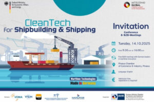Επιχειρηματική αποστολή, στον Πειραιά, 11 Γερμανικών εταιρειών από τον τομέα της ναυτιλίας, διοργανώνει το Ελληνογερμανικό Εμπορικό και Βιομηχανικό Επιμελητήριο, στις 13 με 16 Οκτωβρίου 2025, στο πλαίσιο πρωτοβουλίας του Ομοσπονδιακού Υπουργείου Οικονομίας και Ενέργειας (BMWΕ) της Γερμανίας.