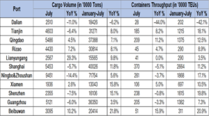 Η διακίνηση εμπορευματοκιβωτίων των λιμένων της Κίνας έχει αυξηθεί κατά μέσο όρο από έτος σε έτος κατά 12,4% από τον Ιανουάριο έως τον Ιούλιο του 2021, σύμφωνα με το τελευταίο Ningbo Containerized Freight Index (NCFI). Από τον Ιανουάριο έως τον Ιούλιο του 2021, ο όγκος φορτίου των λιμένων της Κίνας ήταν 8.911,1 εκατομμύρια τόνοι, μια ετήσια αύξηση 11,3%. Η διακίνηση εμπορευματοκιβωτίων των λιμένων της Κίνας ήταν 161,9 εκατομμύρια ΣΕΕ, ετήσια αύξηση 12,4%.Όσον αφορά τις τιμές μεταφοράς εμπορευματοκιβωτίων, η μέση αξία του NCFI τον Αύγουστο του 2021 ήταν 3816,8 μονάδες, αύξηση 7,28% σε σύγκριση με τον Ιούλιο του 2021.Ο μέσος ναύλος ενός εμπορευματοκιβωτίου γενικής χρήσης (GP) 40 ποδιών από το λιμάνι Ningbo στο λιμάνι του Λος Άντζελες τον Αύγουστο ήταν 6559 δολάρια, μια αύξηση 15,3% σε σύγκριση με τα επίπεδα του Ιουλίου 2021. Από το λιμάνι Ningbo στη Νέα Υόρκη, η τιμή ήταν 6443 $ – μια αύξηση 10,8% από μήνα σε μήνα.