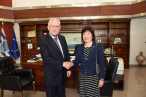 Ο Υπουργός Ναυτιλίας και Νησιωτικής Πολιτικής κ. Φ. Κουβέλης συναντήθηκε σήμερα στο Υπουργείο Ναυτιλίας και Νησιωτικής Πολιτικής με την Πρέσβη της Λαϊκής Δημοκρατίας της Κίνας στην Ελλάδα, κα Zhang Qiyue, κατόπιν πρωτοβουλίας της κινεζικής πλευράς, ενόψει και της προγραμματιζόμενης για τα μέσα Οκτωβρίου επίσκεψης του Υπουργού Μεταφορών της Κίνας κ. Li Xiaopeng στην Αθήνα.