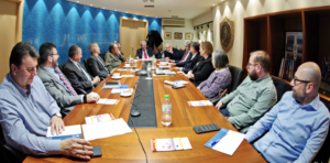 Με επιτυχία ολοκληρώθηκε την Πέμπτη 15 Φεβρουαρίου 2024 η διευρυμένη συνεδρίαση του Διοικητικού Συμβουλίου του Ελληνικού Επιμελητηριακού Επιχειρηματικού Συνδέσμου Μεταφορών (Ε.Ε.ΣΥ.Μ) και η κοπή της Πρωτοχρονιάτικης πίτας του Συνδέσμου στην αίθουσα συνεδριάσεων της Κεντρικής Ένωσης Επιμελητηρίων Ελλάδος (ΚΕΕΕ), υπό την Προεδρία του κ. Μιχάλη Αδαμαντιάδη.