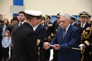 Παρουσία του Υπουργού Ναυτιλίας και Νησιωτικής Πολιτικής Φώτη Κουβέλη απονεμήθηκαν σήμερα (04/02/2019), στον αίθριο χώρο του Υπουργείου, ξίφη σε πενήντα δύο Αξιωματικούς Λιμενικού Σώματος – Ελληνικής Ακτοφυλακής ειδικότητας Υγειονομικού Ιατρού, Ιερέα, απόφοιτους της Σχολής Δοκίμων Υπαξιωματικών Λ.Σ. – ΕΛ.ΑΚΤ. και προερχόμενους εξ’ αθλητών.