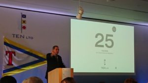 Στη διάρκεια της ομιλίας του, ο Νίκος Τσάκος προσομοίωσε τη ναυτιλία ως ένα “Game of Tons” (ένα παιχνίδι με τους τόνους) της χωρητικότητας των πλοίων, σε μία «παράφραση» του τίτλου της δημοφιλούς σειράς Game of Thrones. Ουσιαστικά η πλεύση της ΤΕΝ χωρίζεται σε έξι περιόδους με την πρώτη από το 1993 έως το 2001 και την έκτη να αρχίζει φέτος μετά την πέμπτη περίοδο 2014-2017 όπου η ΤΕΝ από τα 50 πλοία ανέβηκε στα 65 συνολικής χωρητικότητας 7,5 εκατομμυρίων τόνων.
