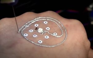 Χρειάστηκε επίσης και ένας νέος τύπος μελανιού, υδροδιαλυτού εδώ, που εφαρμόζεται σε θερμοκρασίες δωματίου ώστε να μην καίει το δέρμα. Την ίδια ώρα, μικρά επαγωγικά πηνία χρησιμεύουν για τη φόρτιση των ηλεκτρονικών κυκλωμάτων. Η μικροσυσκευή, όποια χρήση κι αν έχει, παραμένει στο χέρι για περισσότερο από δύο ώρες και μετά την ξεκολλάς εύκολα ή την αφαιρείς με τη βοήθεια του νερού!
