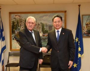 Ο Κινέζος Υπουργός αναφέρθηκε στη γεωστρατηγική επιλογή της κινεζικής κυβέρνησης για ενίσχυση της διμερούς οικονομικής και εμπορικής συνεργασίας των δυο χωρών στη βάση του υφιστάμενου, εκτενούς θεσμικού πλαισίου ναυτιλιακής συνεργασίας μεταξύ τους (που περιλαμβάνει τα ακόλουθα: «Συμφωνία για τις Θαλάσσιες Μεταφορές μεταξύ της Κυβέρνησης της Ελληνικής Δημοκρατίας και της Κυβέρνησης της Λαϊκής Δημοκρατίας της Κίνας», «Συμφωνία μεταξύ της Κυβέρνησης της Ελληνικής Δημοκρατίας και της Κυβέρνησης της Λαϊκής Δημοκρατίας της Κίνας για την Αποφυγή της Διπλής Φορολογίας και την Αποτροπή της Φοροδιαφυγής Αναφορικά με τους Φόρους Εισοδήματος», «Μνημόνιο Κατανόησης σχετικά με τη συνεργασία στους τομείς των Ναυτιλιακών Μεταφορών και των Ναυτιλιακών Τεχνολογιών», «Μνημόνιο Κατανόησης σχετικά με τη Συνεργασία στον Τομέα των Θαλασσίων Υποθέσεων»), καλωσορίζοντας την επικείμενη υπογραφή της «Δήλωσης Προθέσεων Συνεργασίας στους τομείς της Ασφάλειας Ναυσιπλοΐας, Προστασίας του Θαλασσίου Περιβάλλοντος, Ναυτικής Εκπαίδευσης και Διευκόλυνσης της Ναυτιλιακής Κίνησης» μεταξύ της Υπηρεσίας Ασφάλειας Ναυσιπλοΐας του Υπουργείου Μεταφορών της Λ.Δ. Κίνας και του Λ.Σ-ΕΛ.ΑΚΤ. Ο Kινέζος Υπουργός αναφέρθηκε επίσης στην επένδυση της COSCO στο λιμένα Πειραιά ως υπόδειγμα στρατηγικής επιλογής επένδυσης αλλά και υπόβαθρο για την περαιτέρω σύνδεση των αναπτυξιακών στρατηγικών των δύο χωρών. Επεσήμανε την κινεζική πρωτοβουλία “Belt and Road” (Η Οικονομική Ζώνη του Δρόμου του Μεταξιού και ο Θαλάσσιος Δρόμος του Μεταξιού του 21ου Αιώνα) ως επιπλέον πεδίο διεύρυνσης των διμερών σχέσεων Ελλάδας – Κίνας στις θαλάσσιες μεταφορές. Ολοκληρώνοντας, ο Κινέζος Υπουργός κατέδειξε την εποικοδομητική συνεργασία μεταξύ των δύο χωρών στο πλαίσιο του IMO και ειδικότερα στο Συμβούλιο του Οργανισμού όπου οι δύο χώρες παραδοσιακά εκλέγονται στην κατηγορία «Α» του Συμβουλίου (ως κράτη με το μεγαλύτερο ενδιαφέρον στην παροχή υπηρεσιών διεθνών θαλασσίων μεταφορών), υιοθετώντας κοινή προσέγγιση σε θέματα ποντοπόρου ναυτιλίας και αποβλέποντας στην προώθηση της ανάπτυξης, στη διευκόλυνση του διεθνούς εμπορίου και στην απελευθέρωση των θαλασσίων μεταφορών σε συνάρτηση με την υιοθέτηση και εφαρμογή αποτελεσματικών διεθνών κανόνων. Επιπρόσθετα, ευχαρίστησε την ελληνική ναυτιλιακή Διοίκηση για την υφιστάμενη αναβαθμισμένη συνεργασία με τον Αναγνωρισμένο Κινεζικό Νηογνώμονα (China Classification Society) ως επιστέγασμα των εποικοδομητικών διμερών ναυτιλιακών σχέσεων. Τέλος, απηύθυνε πρόσκληση προς τον κ. ΥΝΑΝΠ για πραγματοποίηση επίσημης επίσκεψης στην Κίνα.
