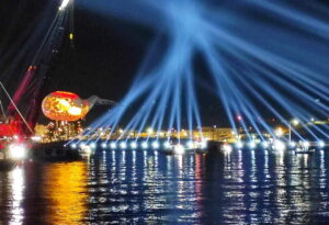 Το λιμάνι και ο παράκτιος χώρος φωτίστηκαν επιβλητικά και αποτέλεσαν την κεντρική σκηνή για ένα κορυφαίο υπερθέαμα ήχου και εικόνας.