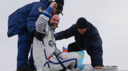 Με απόλυτη ασφάλεια προσγειώθηκαν σήμερα στο Καζακστάν οι δύο αστροναύτες και ο κοσμοναύτης που επέστρεψαν με ρωσικό πύραυλο Σογιούζ από τον Διεθνή Διαστημικό Σταθμό (ISS) στη Γη
