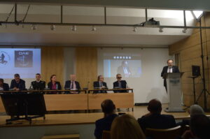 Χαιρετισμό απηύθυνε ο Υφυπουργός Δικαιοσύνης και Βουλευτής Β΄ Δυτικής Αττικής, κ. Γεώργιος Κώτσηρας, ο οποίος εξήρε το εξωστρεφές έργο της Διοίκησης του Ο.Λ.Ε. ΑΕ και τις πρωτοβουλίες για συνέργειες με την πανεπιστημιακή κοινότητα. Ο Αντιπρόεδρος της Βουλής και Βουλευτής Β΄ Δυτικής Αττικής, κ. Αθανάσιος Μπούρας, απέστειλε χαιρετισμό συγχαίροντας τους διοργανωτές του Συνεδρίου. Στον χαιρετισμό του ο Α΄ Γραμματέας της Βουλής και Βουλευτής Β΄ Δυτικής Αττικής, κ. Ευάγγελος Λιάκος, αναφέρθηκε στις εξωστρεφείς δράσεις του Ο.Λ.Ε. ΑΕ χαρακτηρίζοντας πρωτοποριακή την συνεργασία του Λιμένα Ελευσίνας με την ακαδημαϊκή κοινότητα.
