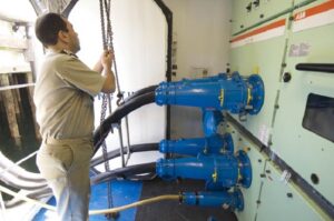 - Οι λειτουργίες σύνδεσης/αποσύνδεσης του πλοίου με την χερσαία υποδομή διαφέρουν από τμήμα σε τμήμα. Στους τερματικούς σταθμούς εμπορευματοκιβωτίων υπάρχει μόνιμα διαθέσιμο προσωπικό. Στους τερματικούς σταθμούς κρουαζιερόπλοιων όχι. Ως εκ τούτου, πρέπει να προβλέπεται πρόσθετο προσωπικό στην αποβάθρα, κατά τη διάρκεια των χρόνων σύνδεσης και αποσύνδεσης, καθώς και ενδιάμεσα σε κατάσταση αναμονής σε περίπτωση έκτακτης ανάγκης. Αυτές οι εργασίες απαιτούν ειδικευμένους εργαζόμενους. Το βάρος των καλωδίων συνεπάγεται τουλάχιστον δύο άτομα για να χειριστούν μια εγκατάσταση.