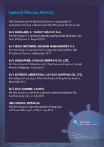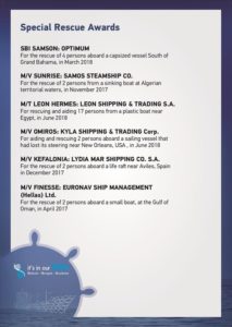Φέτος βραβεύτηκαν εκπρόσωποι 229 ναυτιλιακών εταιριών που εδρεύουν στην Ελλάδα και οικειοθελώς συμμετέχουν στο δίκτυο διάσωσης ανθρώπινης ζωής και περιουσιών στη θάλασσα με 1.800 πλοία που φέρουν τη σημαία του AMVER.